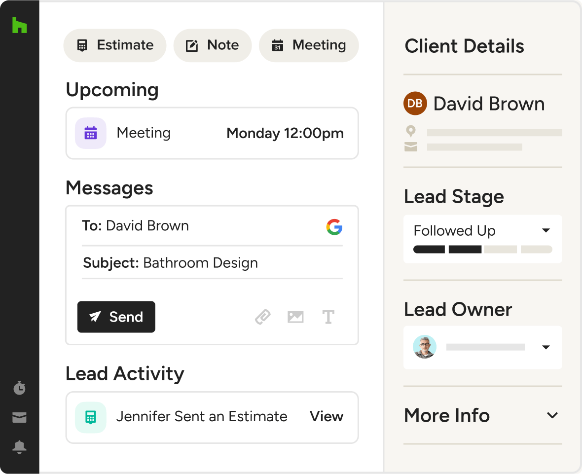 Show off your business and take your digital prowess a step further with a professional, unique website from Houzz Pro – included with an ultimate subscription to our construction lead software. Whether your clients are on desktop or mobile, our websites work perfectly no matter the device. Need a domain? We’ll purchase one for you and handle hosting as well. A better online experience means more leads for your construction business.