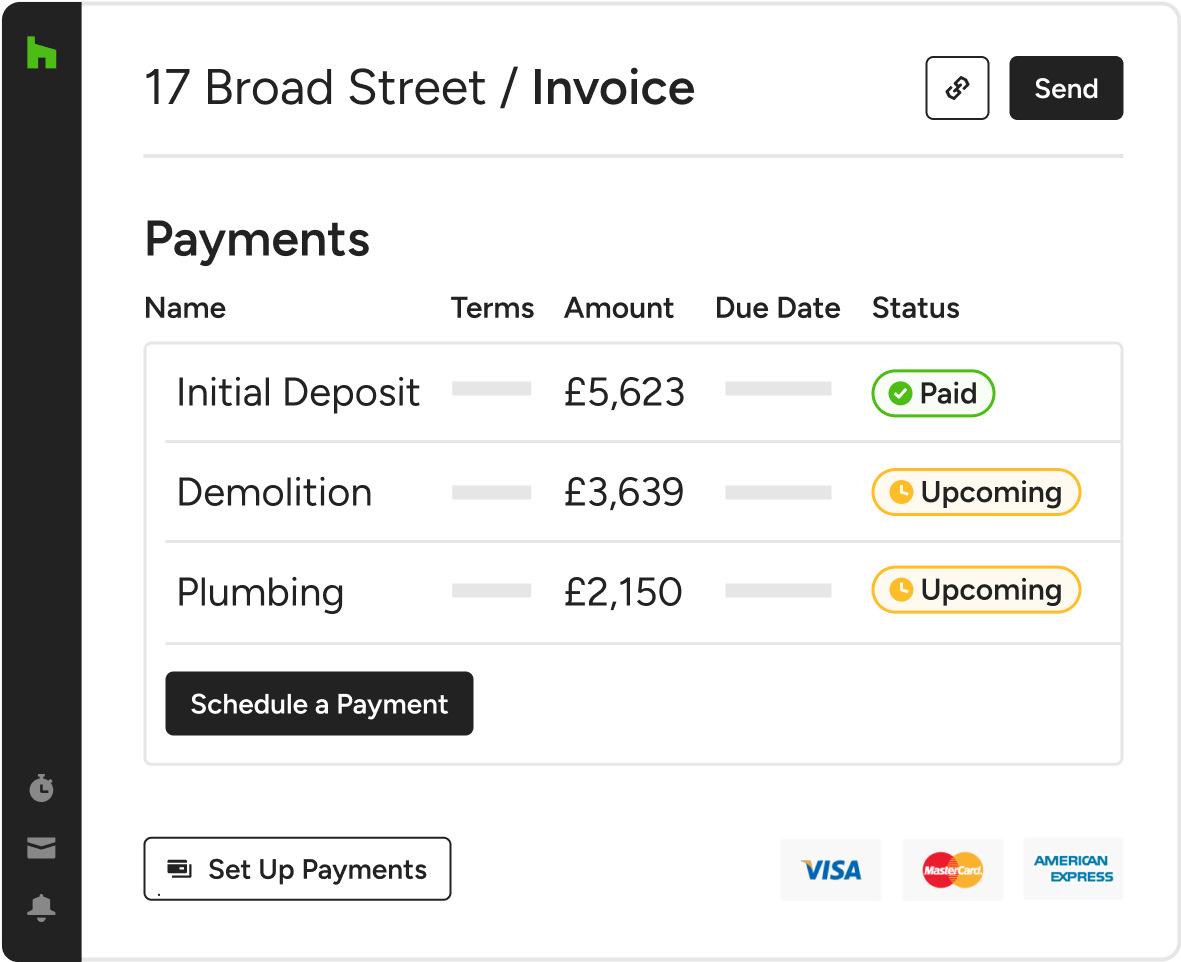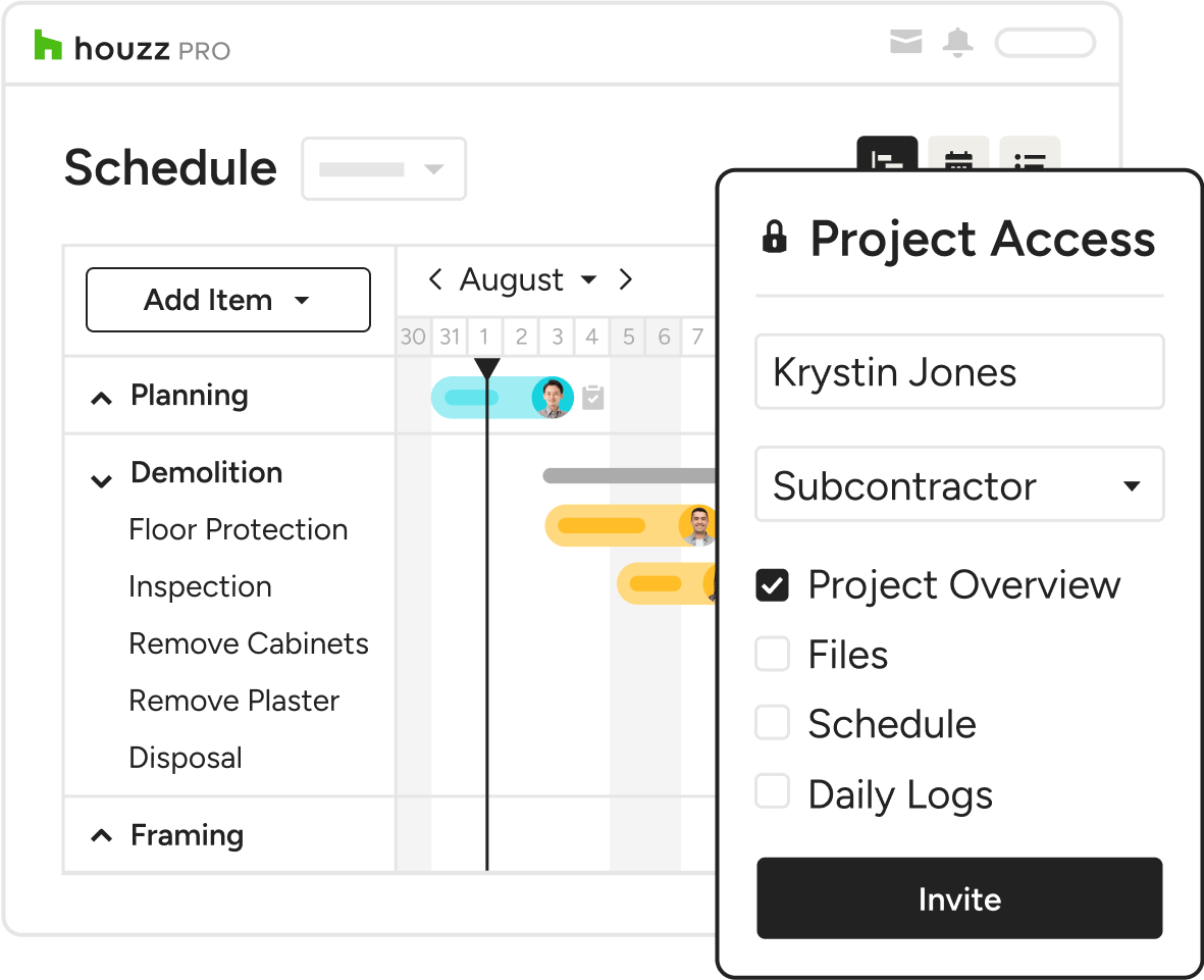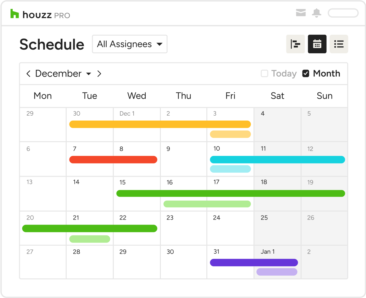 When you can visualise your project schedule, you'll catch potential delays you couldn't see before. Houzz Pro's construction employee scheduling software keeps your project on the right course.
